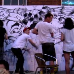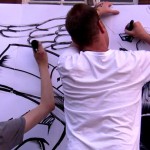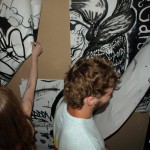 I have been living in Bristol for a few months now. I decided to take some of the city to my home town of Taunton. So I held a live art battle in the style of a Secret Walls event. This was a test, a trial run, a first attempt as I dip my toe in the water of live performance illustration.  There were supposed to be 2 battles happening that evening but one contender dropped out so Sam, Ferg and myself combined for a three-way so to speak.  We totally over-ran on time and the finished piece lacked a back-fill. But all things considered this was pretty successful for a first attempt.